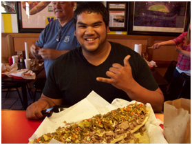 So what is the Windy City Sears Tower Challenge? Simply eat 7.2lb beef and sausage combo sandwich with cheese, hot and sweet peppers and a bag of fries in 30 minutes or less.